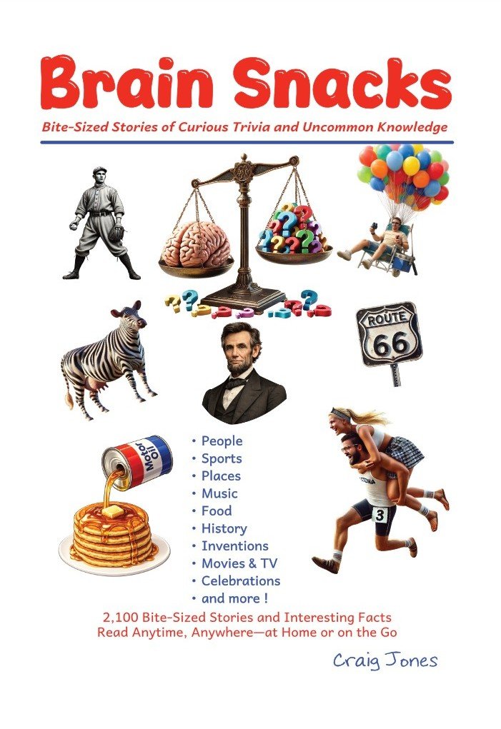 Brain Snacks, my new trivia book, was published on Amazon when I noticed some needed refinements. PLEASE don’t order it yet. It’s not quite up to my high standards yet. I’m working to make it that way. Please stand by.